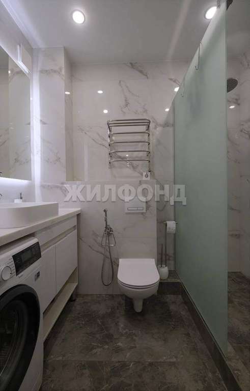Новому собственнику остается: кухный гарнитур, для посудомоечной машины предусмотрена фвасадная панель, варочная панель, духовой шкаф, холодильник, посудомоечная машина, светлый диван, кресло, встроенный зеркальный шкаф, шкаф-стеллаж книжный, подставка под ТВ телефизор, а санузлы современно облицованы керамогранитом и оснащены сантехникой. В квартире предусмотрены блютуз-колонки - 4 шт. по одной в каждом помещении кроме санузла, теплый пол в коридоре, санузле и на кухне.