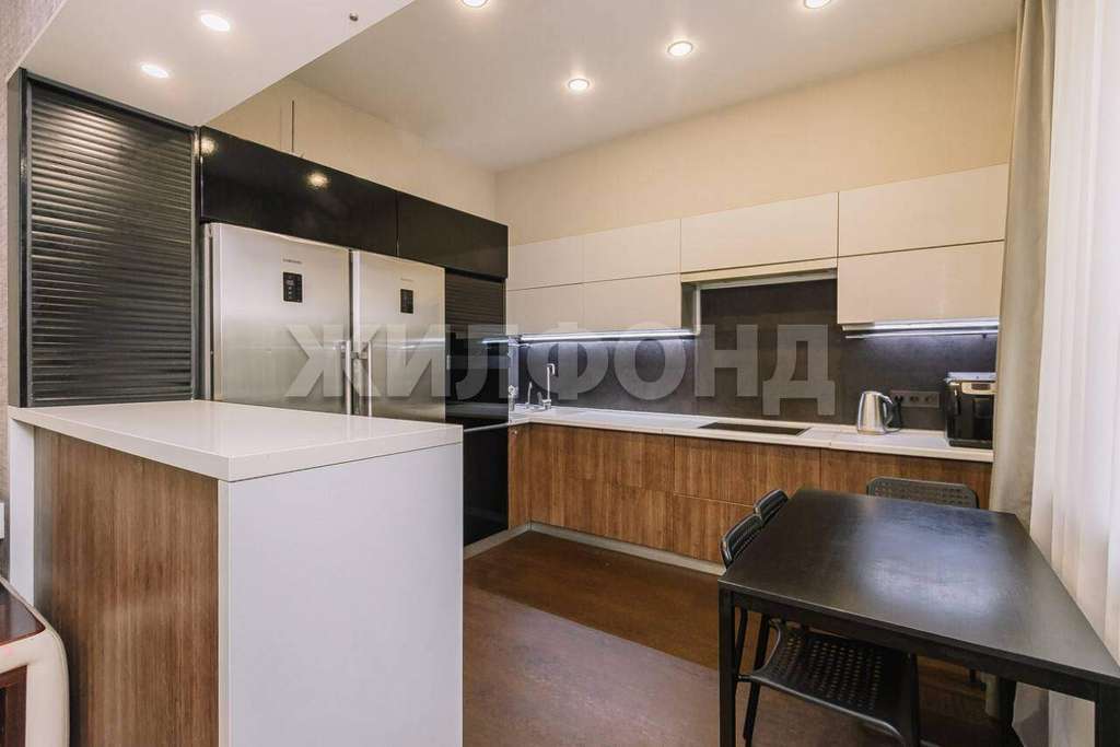 В кухонной зоне остается новым собственникам: кухонный гарнитур, варочная панель, вытяжка, двухкамерный холодильник, посудамойка, встроенный фильтр для питьевой воды с краном, барная стойка.