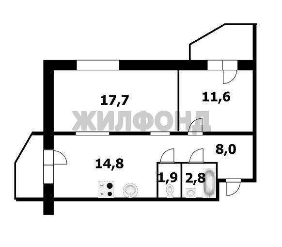 Продажа 2-комнатной квартиры, Новосибирск, Николая Сотникова ул., 6, Новосибирская область