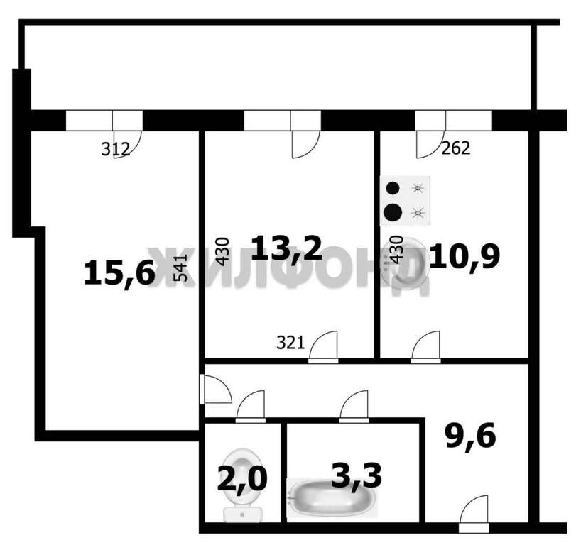 Квартира может использоваться, как классическая 2-ка . Так и как большая 1 ка . Так как стенка между комнатой и кухней позволяет объединить -эти два помещения . И сделать кухню-гостиную.