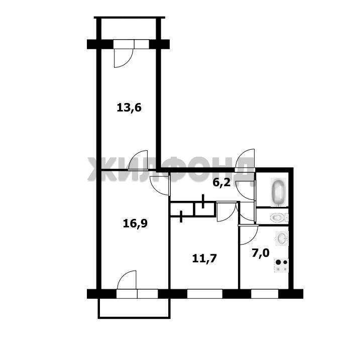 Продажа 3-комнатной квартиры, Новосибирск, Рельсовая ул., 3, Новосибирская область