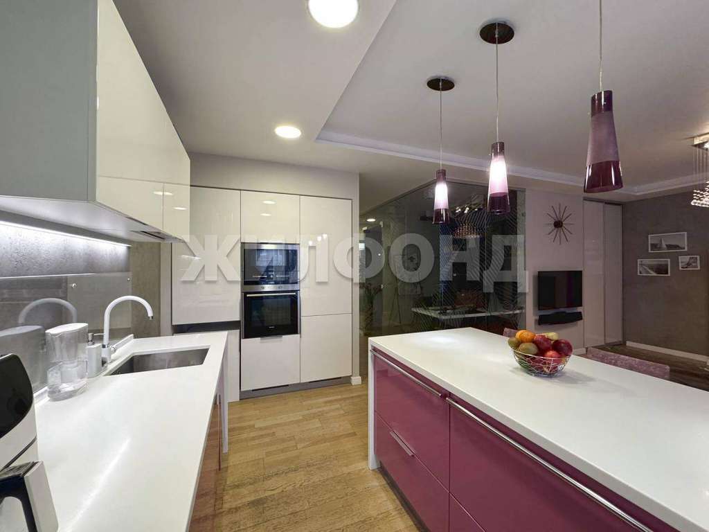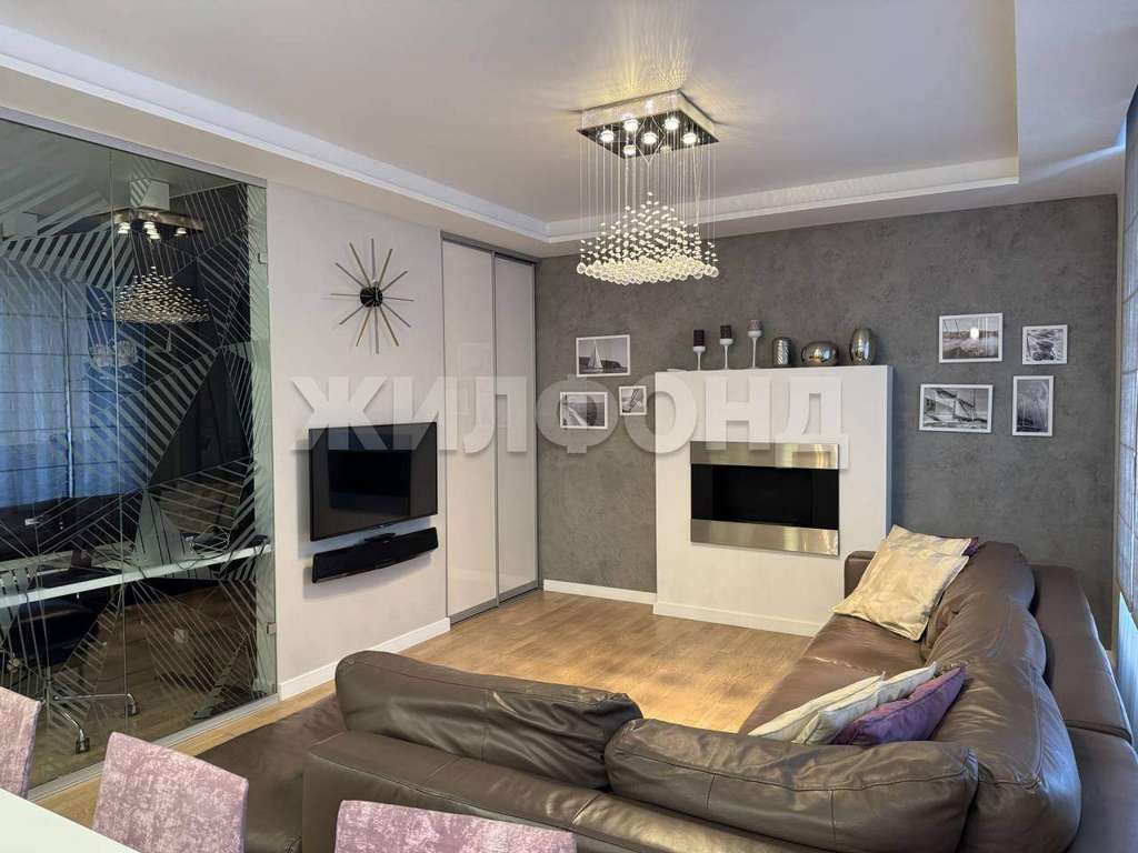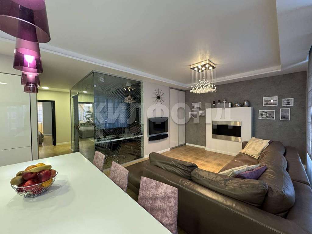 Эксклюзивная квартира в экологически чистом районе р. п. Краснообск. Индивидуальная планировка: большая кухня-гостиная 25,8 кв. м. с камином, 2 спальни, кабинет, просторная гардеробная, большой санузел.