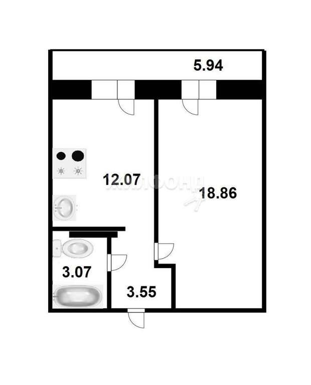 Уникальная планировка просторная комната, кухня и большая лоджия с выходом из комнаты и кухни почти 6 м2 (не входит в общую площадь квартиры) !