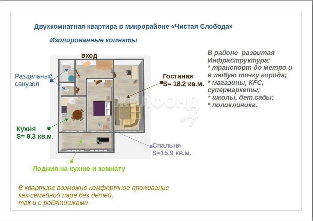 Очень развитая инфраструктура (магазины, супермаркеты, дет. сады, школы) .