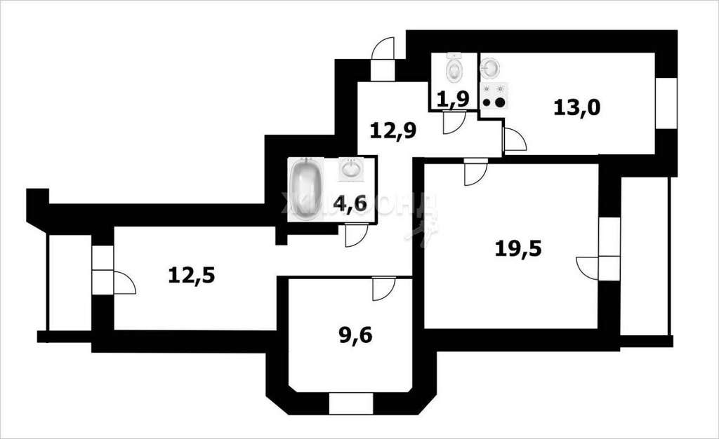 3 комн. квартира по ул. Ельцовская. Общей площадью: 74.00 кв. м.