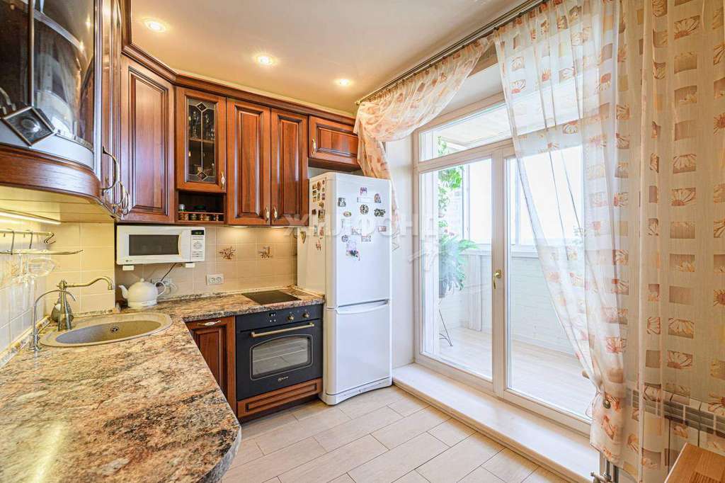 Просторная кухня с выходом на балкон. Откуда открывается завораживающий вид на Ботанический сад.