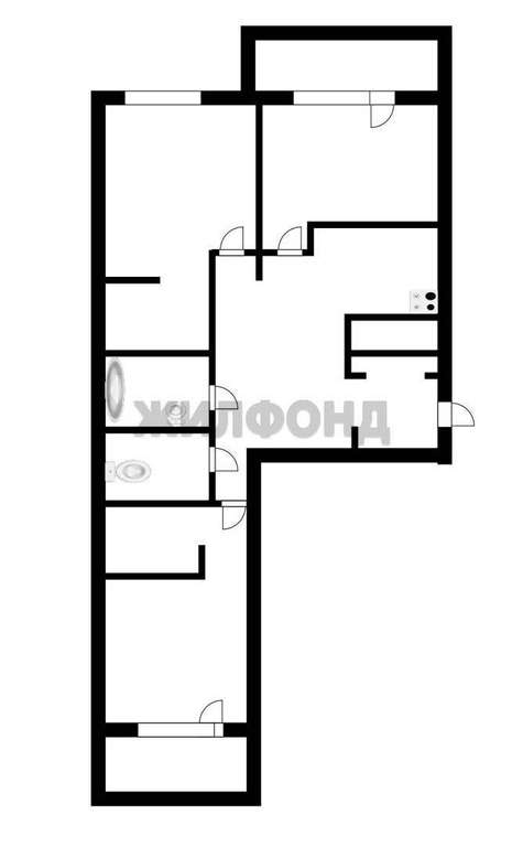 Квартира с индивидуальной планировкой, три изолированные комнаты и кухня гостиная,