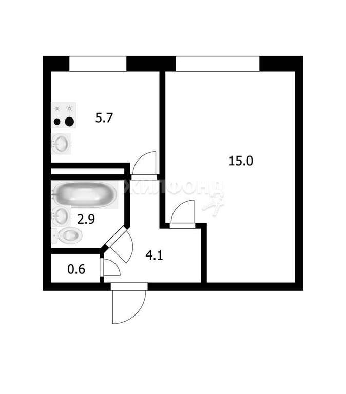 1 комн. квартира по ул. Печатников. Общей площадью: 28.30 кв. м.