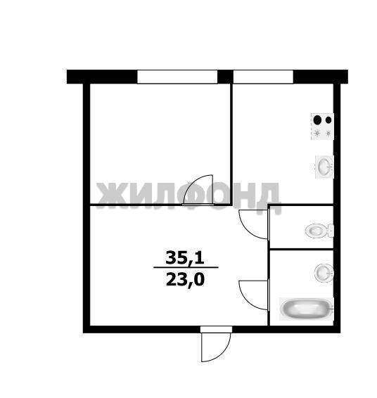 1 комн. квартира по ул. Чкалова. Общей площадью: 35.10 кв. м.