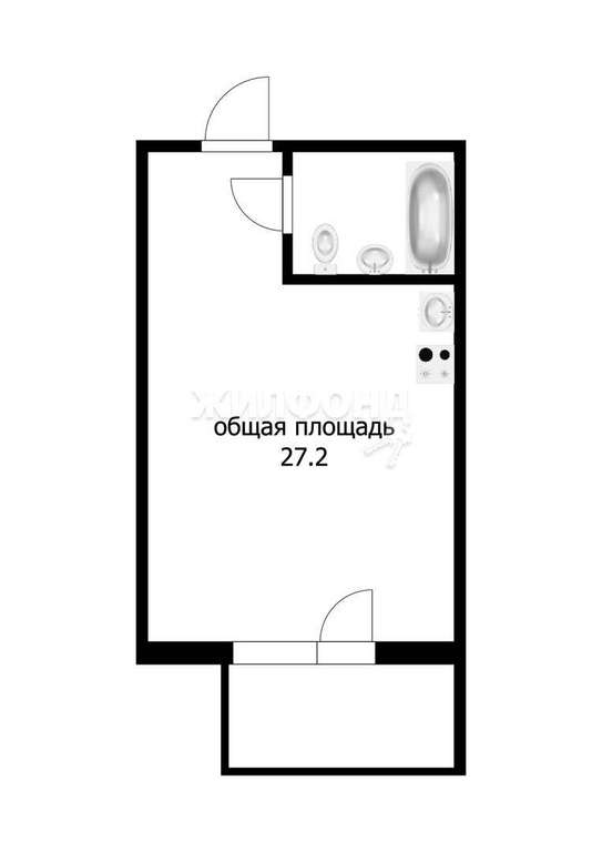 Чудесная просторная студия 27,2 м2 с отдельной кухонной зоной.