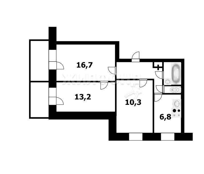 Типовая планировка квартиры позволит вам с лёгкостью осуществить любые дизайнерские решения и создать уютное пространство для жизни. В квартире предусмотрены три комнаты, что позволит разместиться всей семье или создать рабочее пространство для работы из дома.