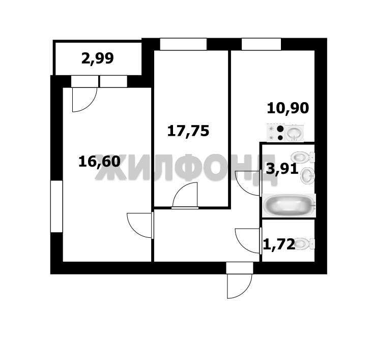 Продажа 2-комнатной квартиры, Новосибирск, Костычева ул., 36, Новосибирская область