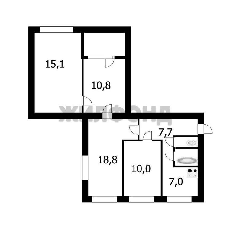 Все комнаты правильной формы, одна из них изолированная, кухня 7 кв. м, раздельный сан узел, лоджия