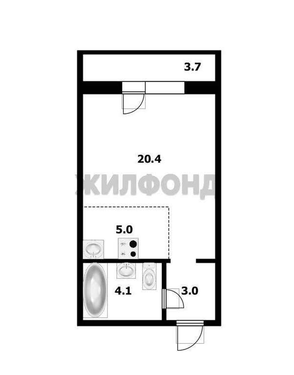 1 комн. квартира по ул. Плющихинская. Общей площадью: 32.50 кв. м.