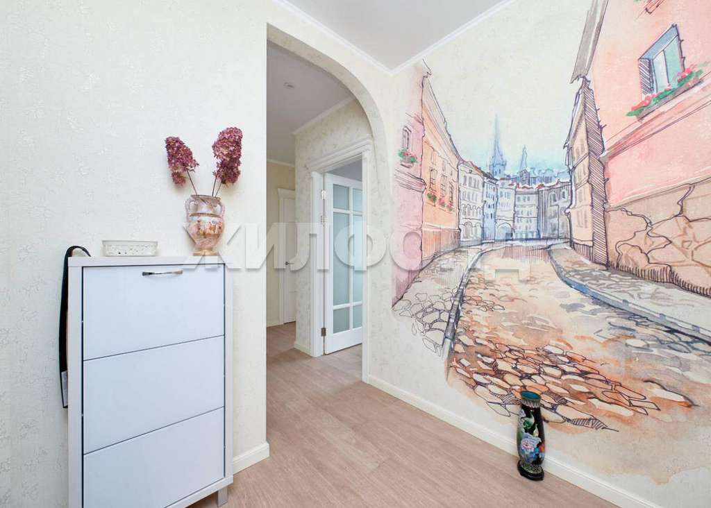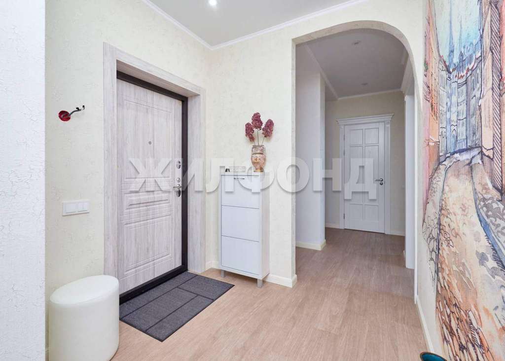 Отличное состояние. В спальне встроенный зеркальный шкаф-гардероб с оборудованными системами хранения, изготовленный по индивидуальному заказу. В просторной прихожей встроенный зеркальный шкаф.