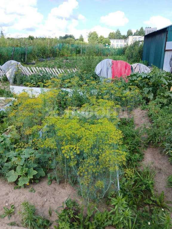 Рядом с домом земельный участок , с посадками .