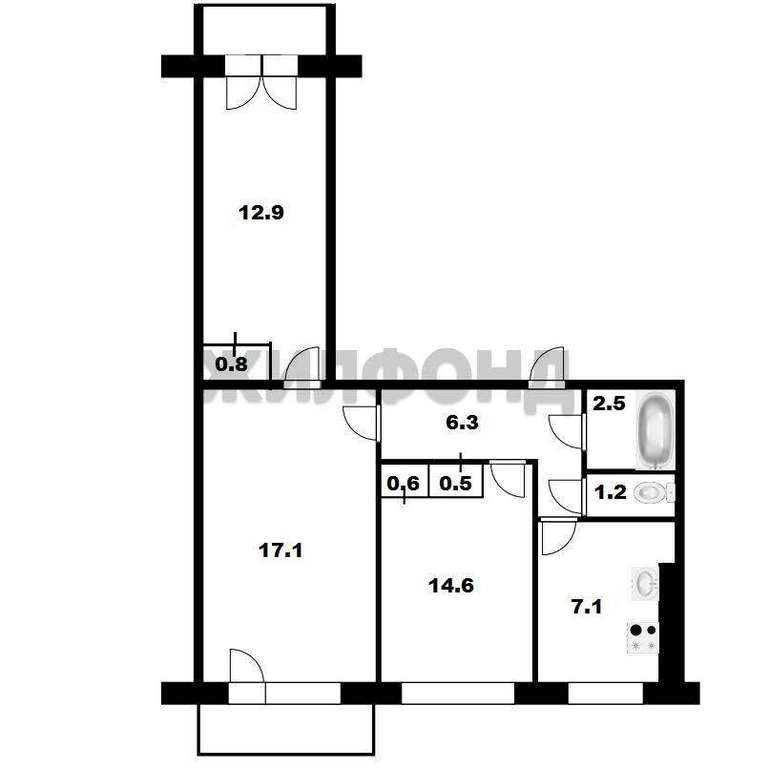 3 комн. квартира по ул. Забалуева. Общей площадью: 60.60 кв. м.