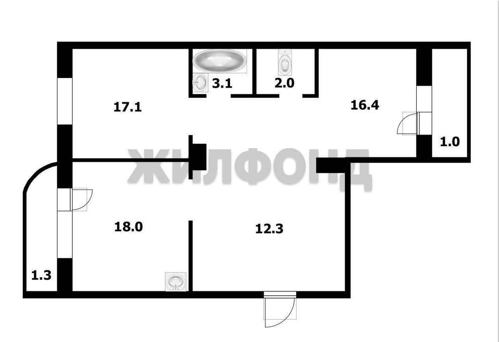 Квартира просторная с большой кухней, что позволит сделать трехкомнатную студию.
