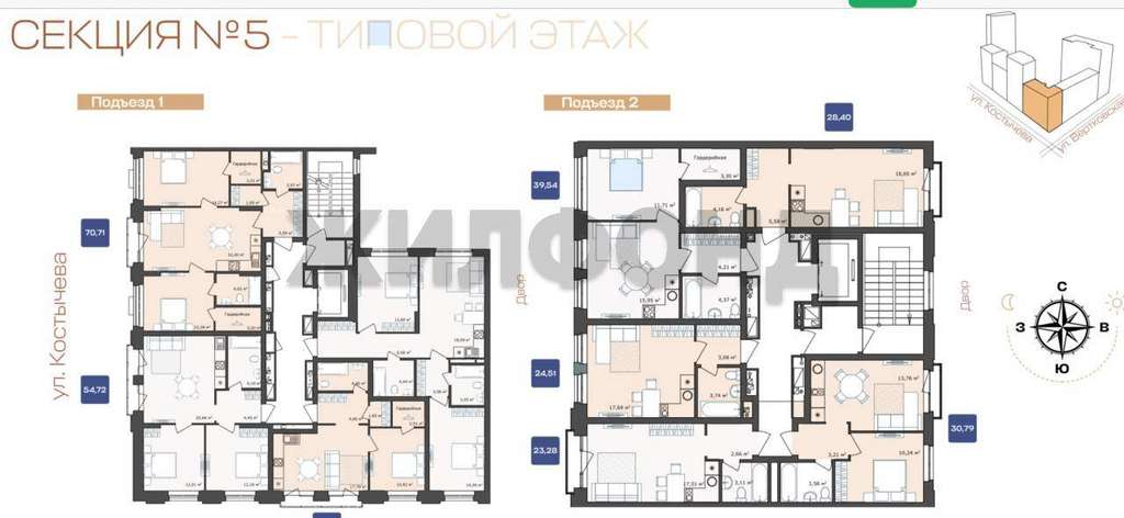 Квартира расположена на четвертом этаже одиннадцатиэтажного секции дома, общая площадь составляет 28.4 квадратных метра.