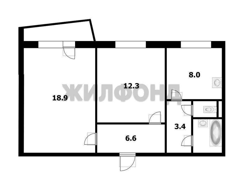 Гостиная 18,9 кв. м., Спальня 12,3 кв. м.
