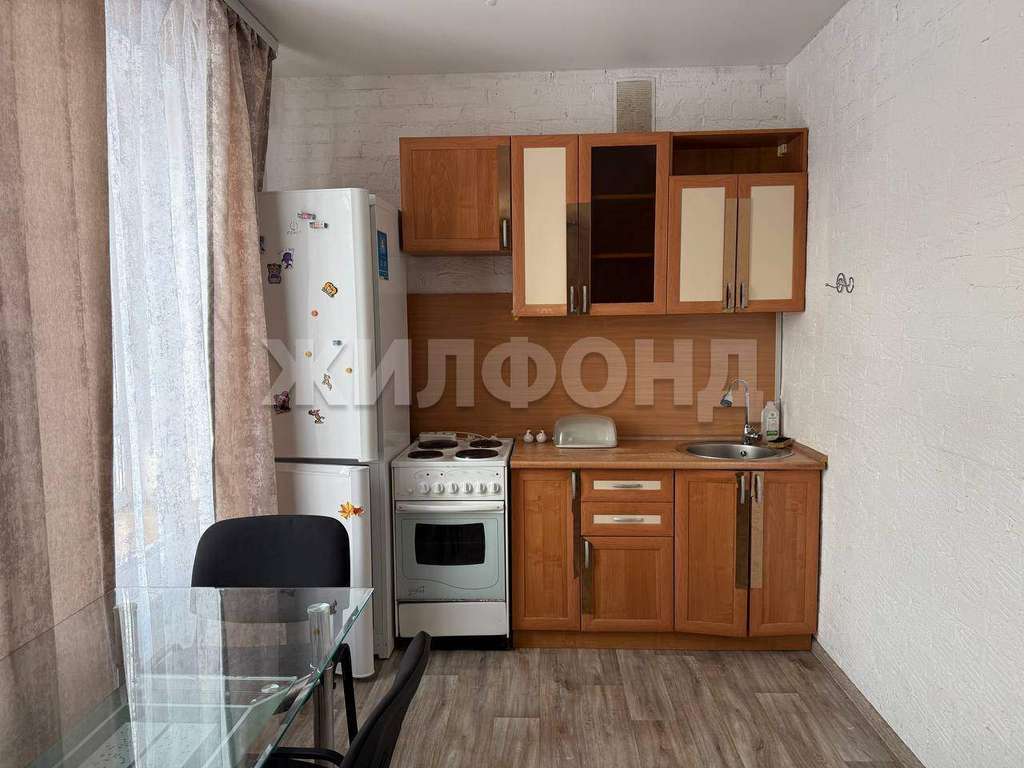 В квартире остается шкаф и кухонный гарнитур.