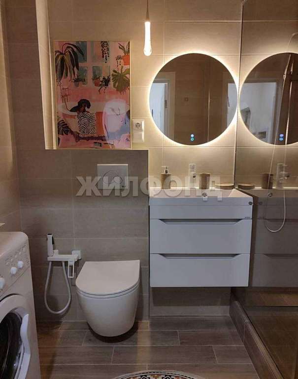 душевая кабина, подвесной унитаз, стиральная машина - аккуратно, стильно, удобно.