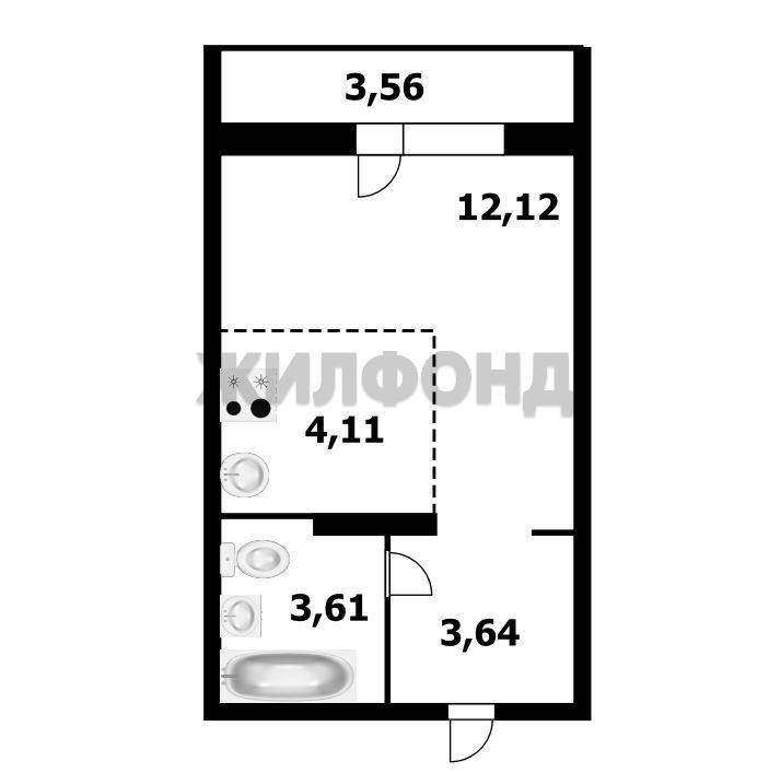 1 комн. квартира по ул. Виктора Уса. Общей площадью: 23.80 кв. м.