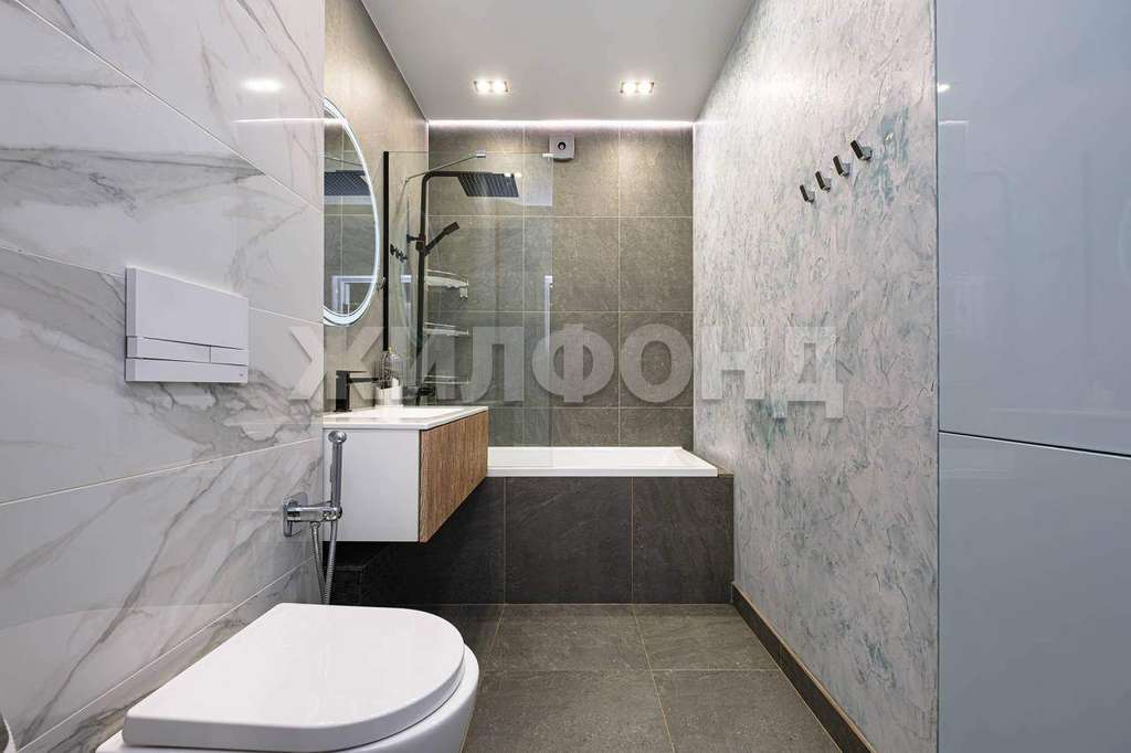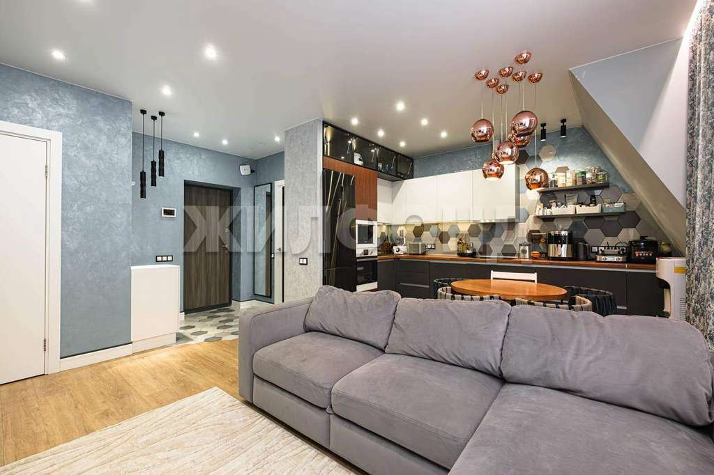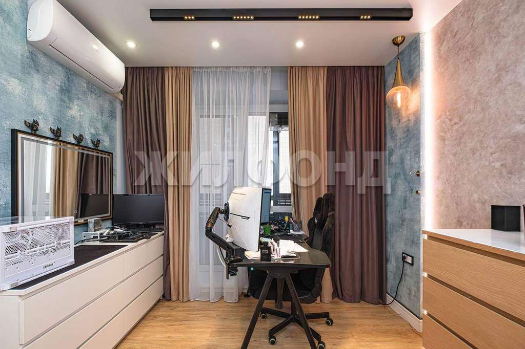 Декоративная штукатурка. Kухня со встроенной техникой: СBЧ-печь, посудомоечная машина, духовой шкаф, холодильник. В зоне кухни и в сан. узле теплый пол. Освещение многоуровневое. Вид во двор, солнечная сторона(до обеда) , летом не жарко. В квартире 2 гардеробные: одна на входе, вторая в спальне.