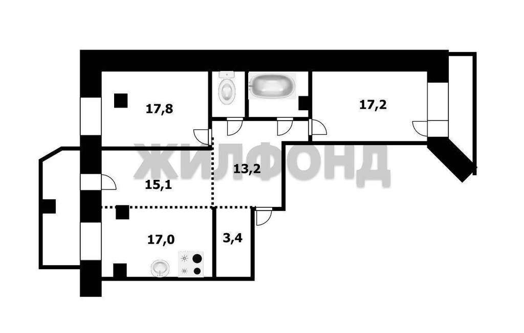 -3 удобные комнаты по 17 м2 и кухня 15м2, сделают вашу жизнь комфортной в лучшем месте мегаполиса.