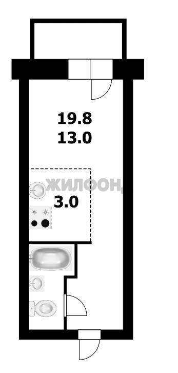1 комн. квартира по ул. Твардовского. Общей площадью: 19.80 кв. м.