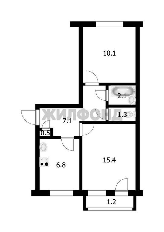 Общая площадь квартиры составляет 43,9 кв. м.
