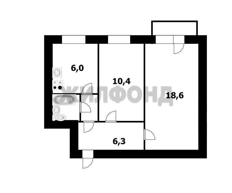Продажа 2-комнатной квартиры, Новосибирск, Дмитрия Донского ул., 49, Новосибирская область