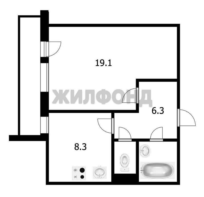 Просторная жилая площадь 19 м и кухня 9 м позволят вам комфортно разместиться и наслаждаться жизнью.