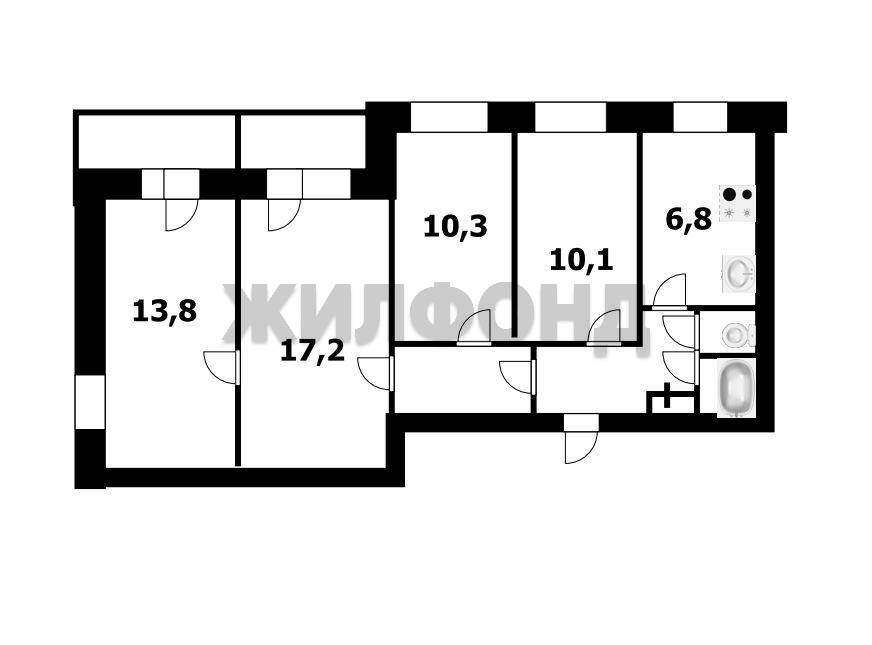 Продажа 3-комнатной квартиры, Новосибирск, Дуси Ковальчук ул., 69, Новосибирская область