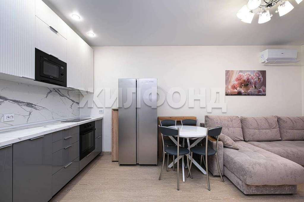Просторная кухня-гостиная 17,7 м2 с современной новой кухней и бытовой техникой, изолированная спальня - 12,8 м2 с панорамными окнами в пол и выходом на французский балкон с красивым видом на реку. Комфортный совмещенный санузел - 4,6 м2 с ванной, гардеробная комната - 2,3 м2 с удобным хранением и просторная прихожая.