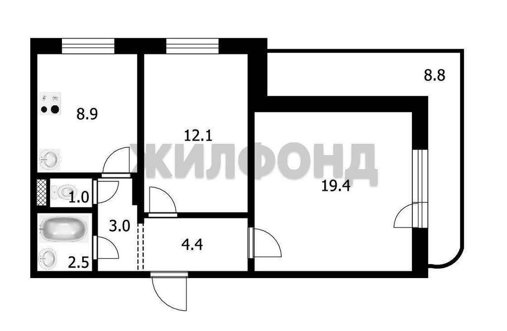Продажа 2-комнатной квартиры, Новосибирск, В.Высоцкого ул., 31, Новосибирская область
