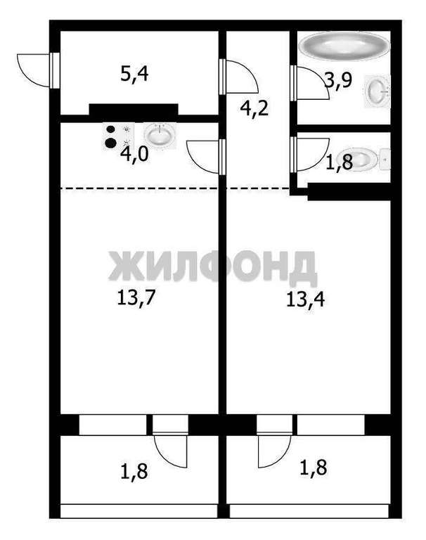 Продажа 2-комнатной квартиры, Новосибирск, Александра Чистякова ул., 22, Новосибирская область