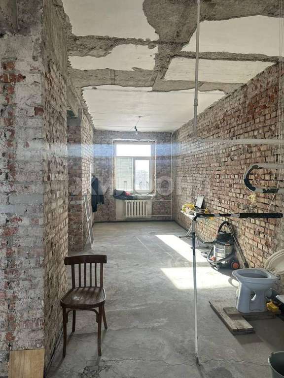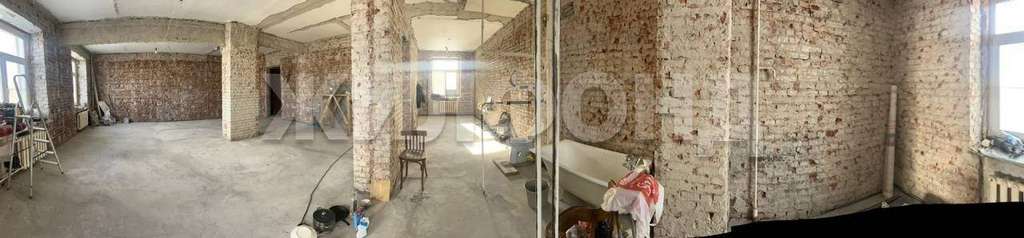 В квартире чистовая отделка - стены очищены до кирпича и бетонных перекрытий.