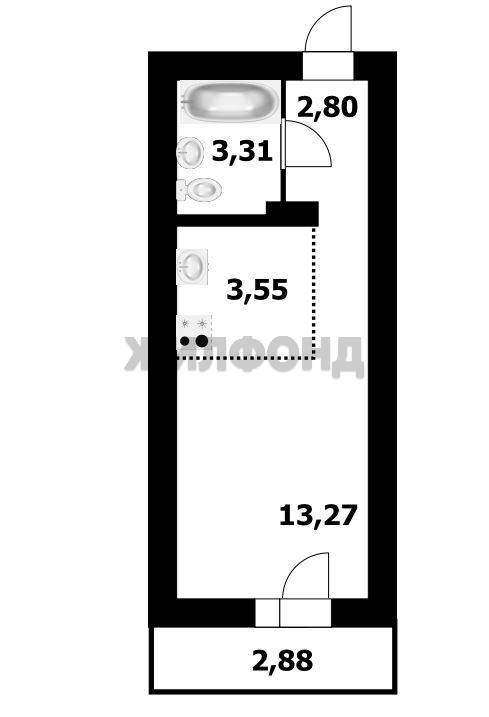 1 комн. квартира по ул. Забалуева. Общей площадью: 22.60 кв. м.