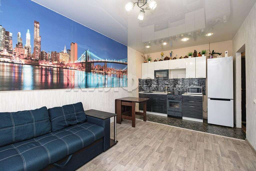 В квартире выполнен современный ремонт из качественных, дорогостоящих материалов. На полу влагостойкий ламинат , зона пола на кухне и прихожей облицована кафелем , натяжные потолки, стены санузла и ванной комнаты облицованы кафелем.