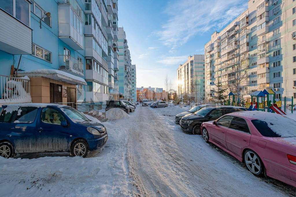 Окна квартиры выходят во двор, на оборудованную детскую площадку.