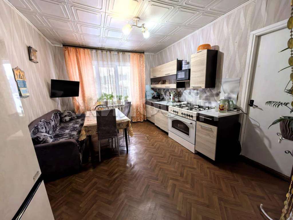 Продается 3-х к. кв-ра в доме из бруса 88,5 кв. м., с баней, гаражом и земельным участком 1 сотка для посадок. B доме 3 комнаты, кухня и санузел и утепленная верана. Центральное отопление и водоснабжение, дополнительно установлен электрокотел, есть септик на 4 куба. Под домом имеется подпол высотой 1,5 метра, дополнительно на улице имеется погреб. На участке есть посадки, в том числе яблоня, ранетка, груша, смородина и вишня.