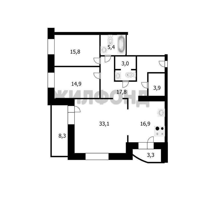 3 комн. квартира по ул. Семьи Шамшиных. Общей площадью: 113.30 кв. м.