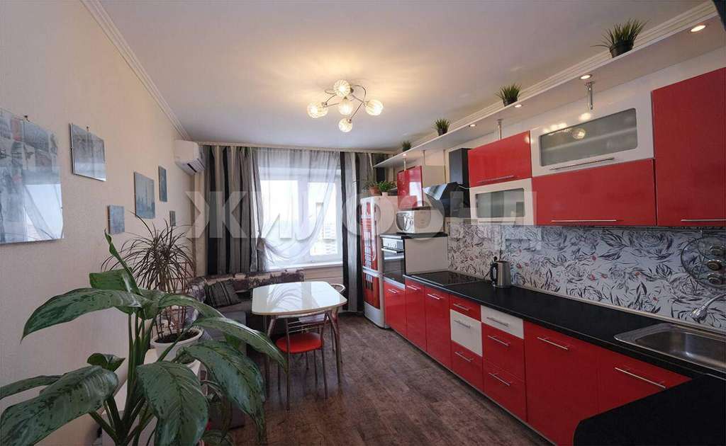 Новым покупателям остается кухонный гарнитур с варочной панелью и посудомоечной машинкой, встроенная гардеробная, шкаф в прихожей.