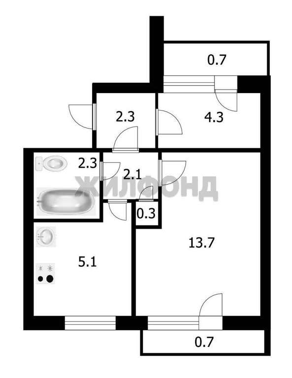 2 комн. квартира по ул. Центральная. Общей площадью: 31.50 кв. м.