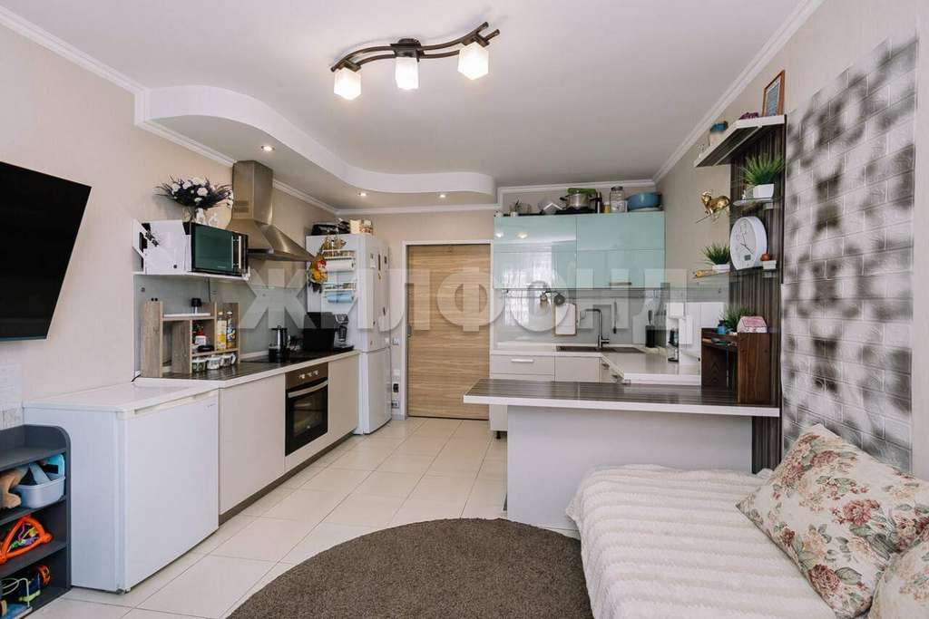 3 жилых комнаты + просторная кухня-гостиная 17 м, где может собираться вся семья.
