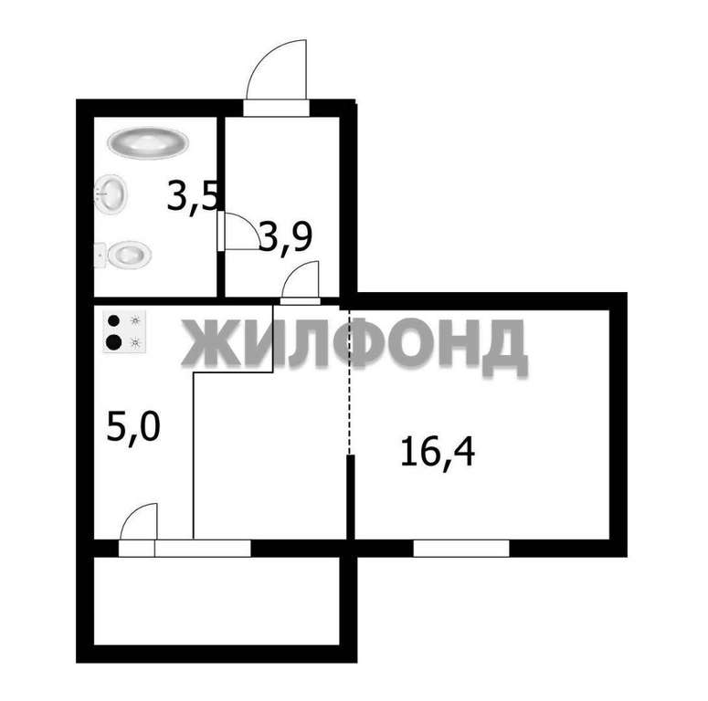 1 комн. квартира по ул. Спортивная. Общей площадью: 26.30 кв. м.