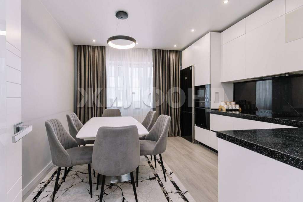 Все, что представлено на фотографиях Мебель и техника ( варочная панель, духовой шкаф, холодильник, посудомоечная машина, микроволновка, стиральная машинка, сушильная машина для белья) остается новому собственнику.
