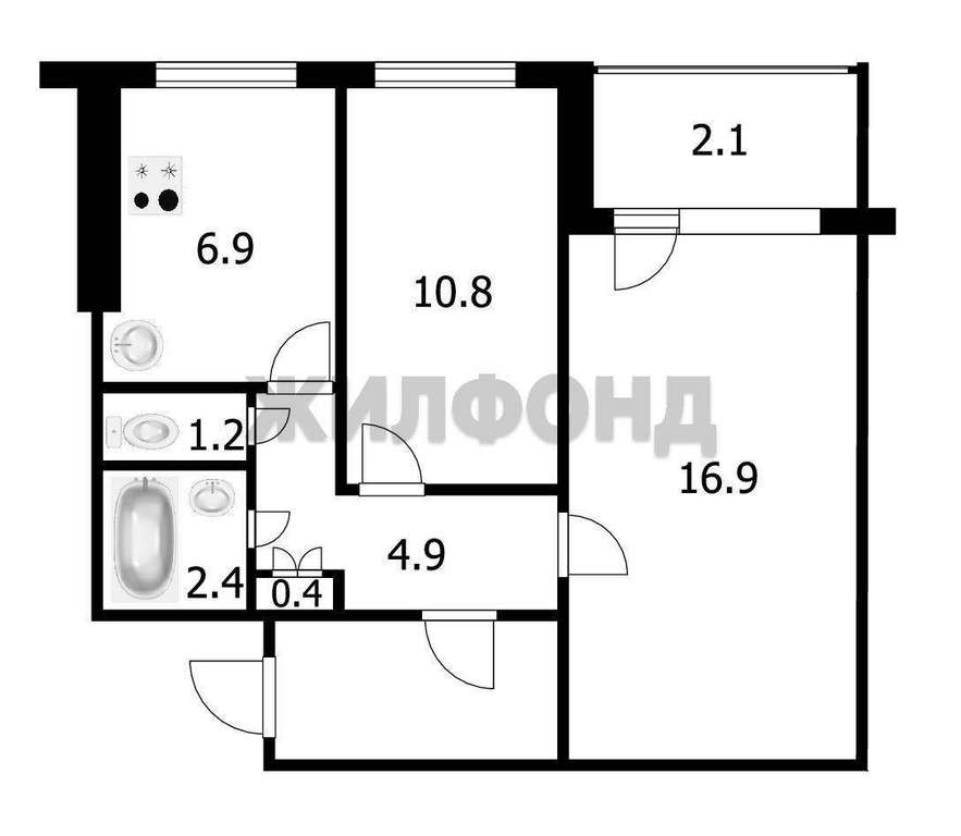 Продажа 2-комнатной квартиры, Новосибирск, Дуси Ковальчук ул., 16, Новосибирская область