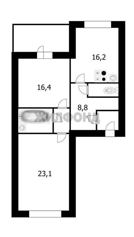 *большая площадь кухни позволяет превратить квартиру в 3-комнатную студию с 2-мя спальнями без дополнительных переделок.,